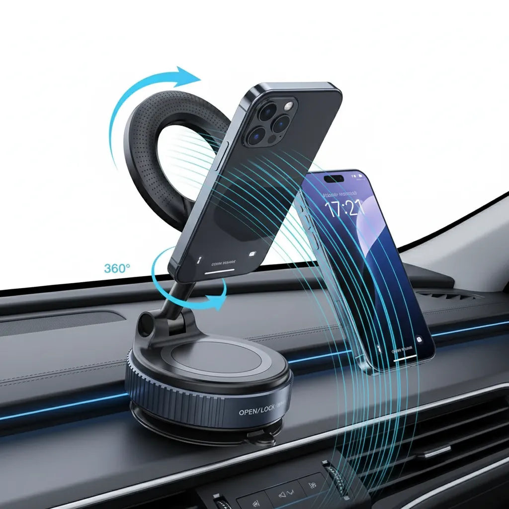 Por eso creamos el Soporte Magnético con Ventosa de Vacío Mecánica, diseñado para una adherencia irrompible y seguridad total.